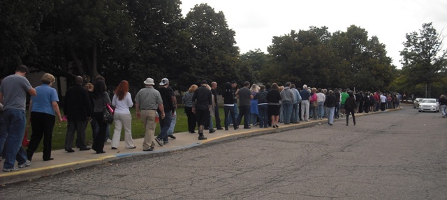Figure 1: The queue of Flint area residents waiting to see Capitalism, A Love Story.