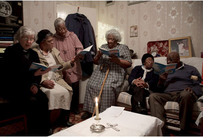 As researcher, both behind and beside the lens, I closely documented the quotidian spiritual practices (both formal and domestic) that play out on Soho Road. This two mile stretch of road is the site of some 30 religious centres each dedicated to different denominations from around the world. Whilst taking photographs for my own project I consciously sought to took functional photographs to give to my subjects in return for their time. I lived with and visited the different religious communities that exist in this street, including Sikhs, Buddhists, Hare Krishnas, Jamaican Rastafarians and The Jesus Army Evangelical Christians. A South Asian Anglican woman priest commented that: